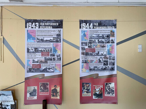 Школьный «Зал Славы» был создан в 2022 году и посвящен истории ВОВ и Блокаде Ленинграда.